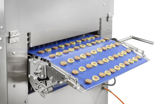The Döinghaus CUT 600 is perfect for cutting biscuit rolls or other strand products. With up to 70 cycles / min and adjustable piece sizes, high productivity as well as flexibility is guaranteed. After the cutting process, the products are automatically deposited on a sheet or optionally conveyor belt, so that a time-consuming manual depositing process is no longer necessary.