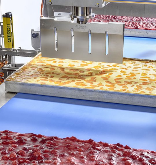 The Döinghaus Ultracut Nado provides the full functionality of an ultrasonic cutter and impresses with its sophisticated ultrasonic cutting technology and automatic centering, built in a hygienic machine. Round and square products in the baking tray or on a support will be cut in perfect quality by the plant. The individual piece sizes, segments and cutting speeds are freely adjustable via an intuitively operable touch panel.