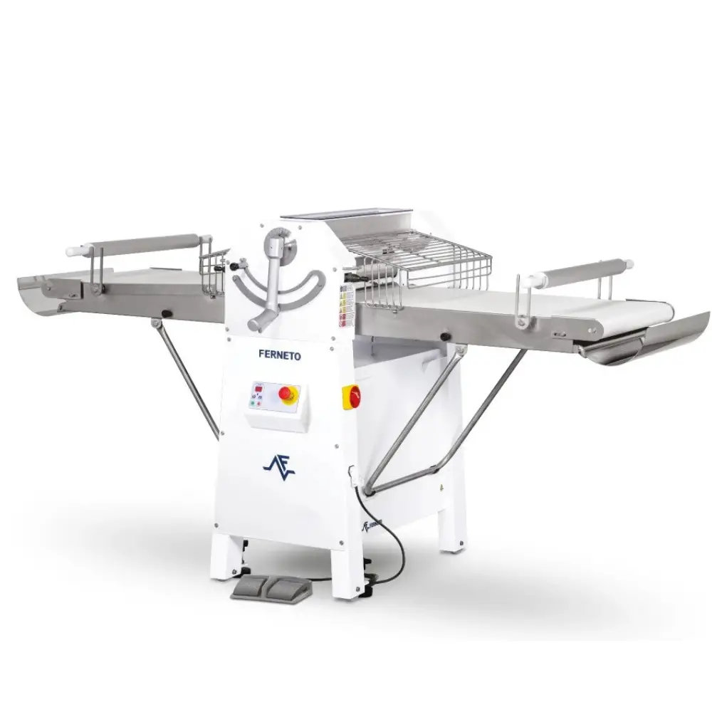 Maximize your bakery’s capacity with the Ferneto LMA620 wide-format dough sheeter. Features 2000 × 580 mm working area, handles up to 10 kg dough, perfect for artisan and semi-industrial operations producing ciabatta, focaccia, and laminated pastries.