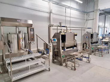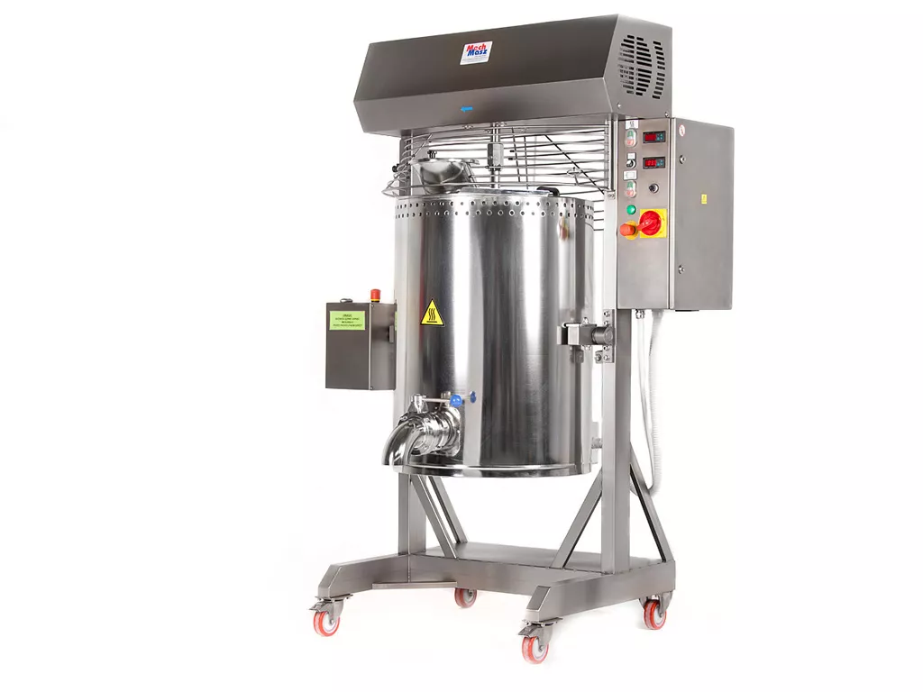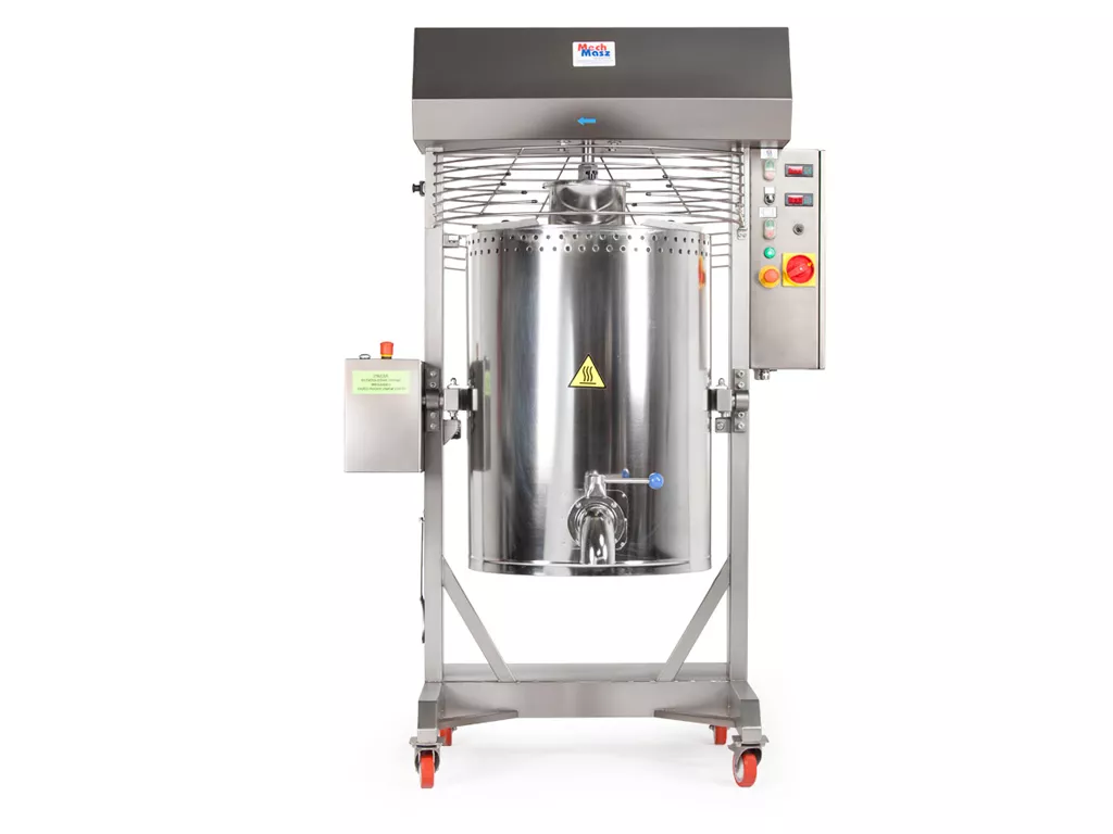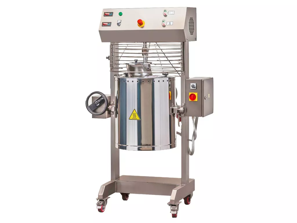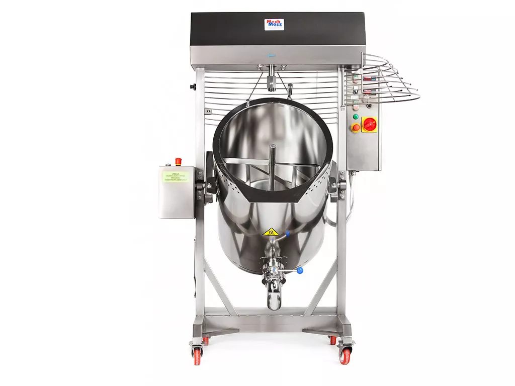 This model has a wide range of standard equipment like a working timer, temperature regulator, variable speed of mixing tool (inverter), motorized and friendly-to-use bowl tipping system, and hygienic and removable bowl tap DN-80.