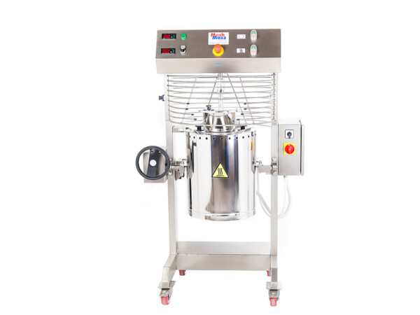 The high-quality materials used in the manufacture of the machine ensure a long service life and failure-free operation. The entire construction is made of AISI 304 steel intended for food contact, resistant to corrosion and most acids, sterilisation solutions, most organic chemicals and dyes. The MK unit heats the entire contents of the boiler evenly up to a maximum temperature of 150°C. Simultaneous heating and mixing are possible.