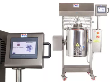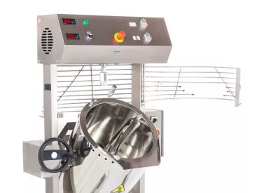 - Tilting bowl with a stop at any position for easy discharging and cleaning – rotation wheel by MK-30,60,80,120 and motorized by MK-200/300/500)